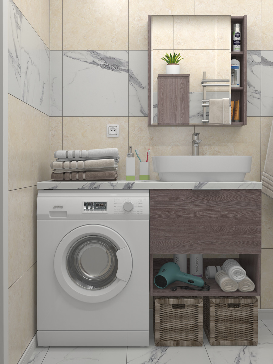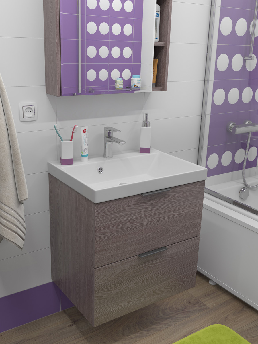 Комплект состоит из подвесной тумбы с двумя ящиками, умывальника Classica 60 и зеркального шкафа.